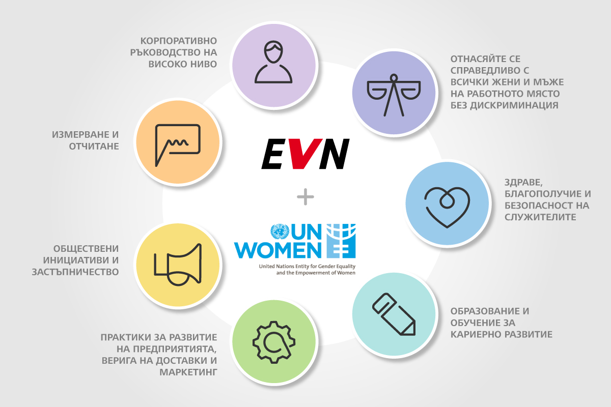 От декември 2025 г. ЕVN България е официално ангажирана с Принципите за овластяване на жените на Организацията на обединените нации. Горди сме, че ние сме първата компания в енергийния сектор, поела отговорността да даде реално измерение на нормите за равенство в практиката си.